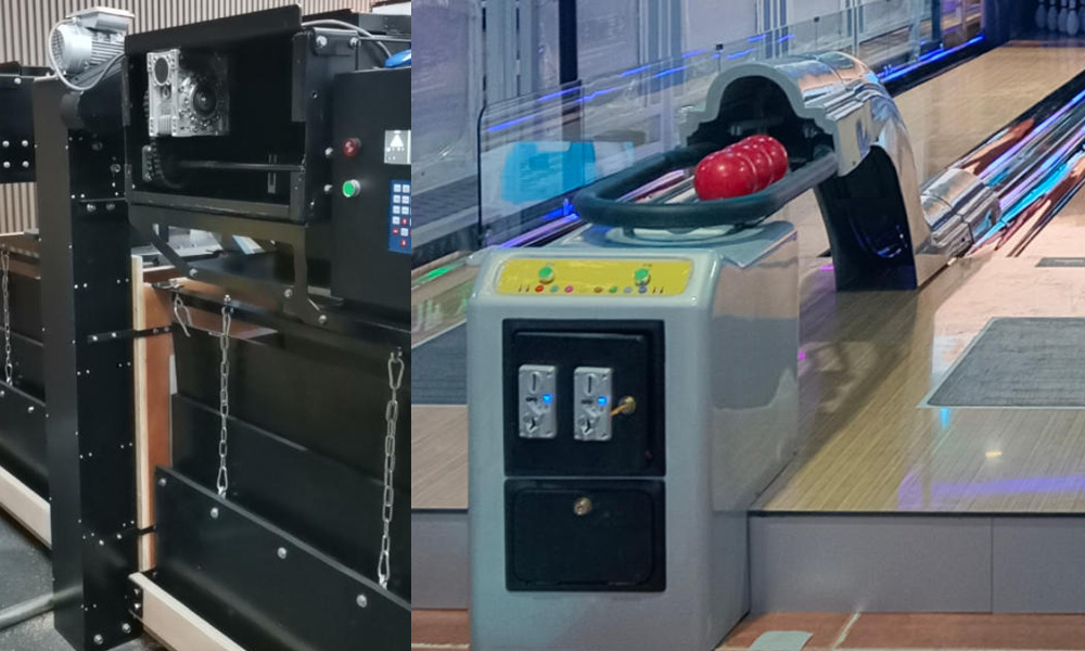 Mini Bowling lane ball return process is the when the ball pay to the pin area,it will roll to the ball lift machine. Lift machine will lift the ball to almost 1.7 meters height place and release it.