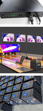 The scoring system composed of scoring computer (two lane share one set),Scoring drop Screen, 485 signal transfer box,Net box and Net cables.