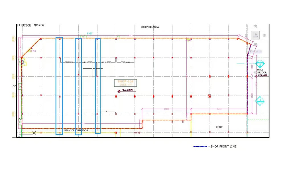 The Scorpions Club 12 lanes bowling alley has a very distinctive design, the layout of bowling lane is 4+4+4.However, the width space between each pillar spacing is less than 4 lanes width measurement which one is 6830mm.The each column spacing on site is only 6510mm.