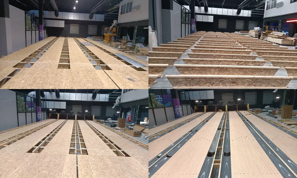 This structure Ensures the bowling lane is durable and not deform, keep the fairway long time level and smoothly.